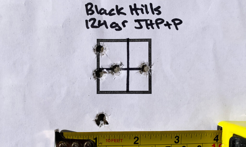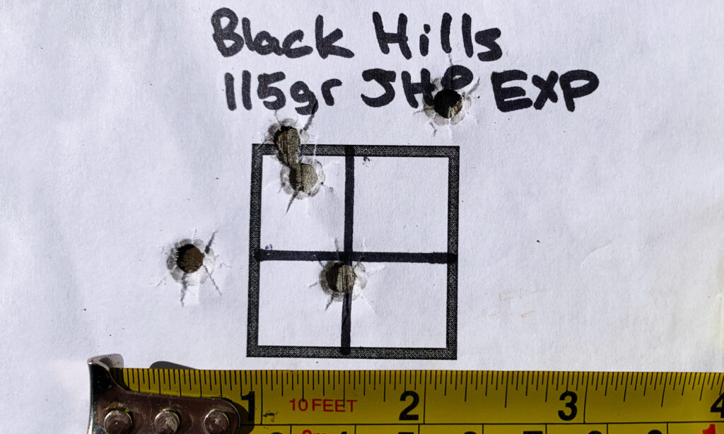 | Black Hills 124gr JHP+P | 1180 fps | 1.625” |