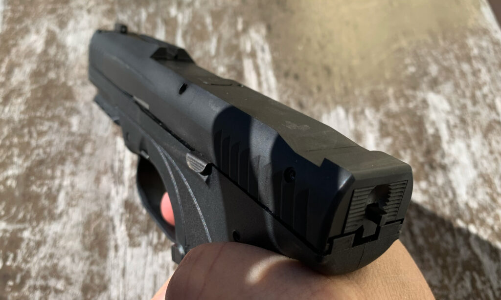 There is also a loaded-chamber window above the ejection port. The double-action striker cocks and releases with the striker protruding from the rear of the slide as the trigger is pulled. What is missing and perhaps a worthy exclusion for this particular model is any provision for an optic.