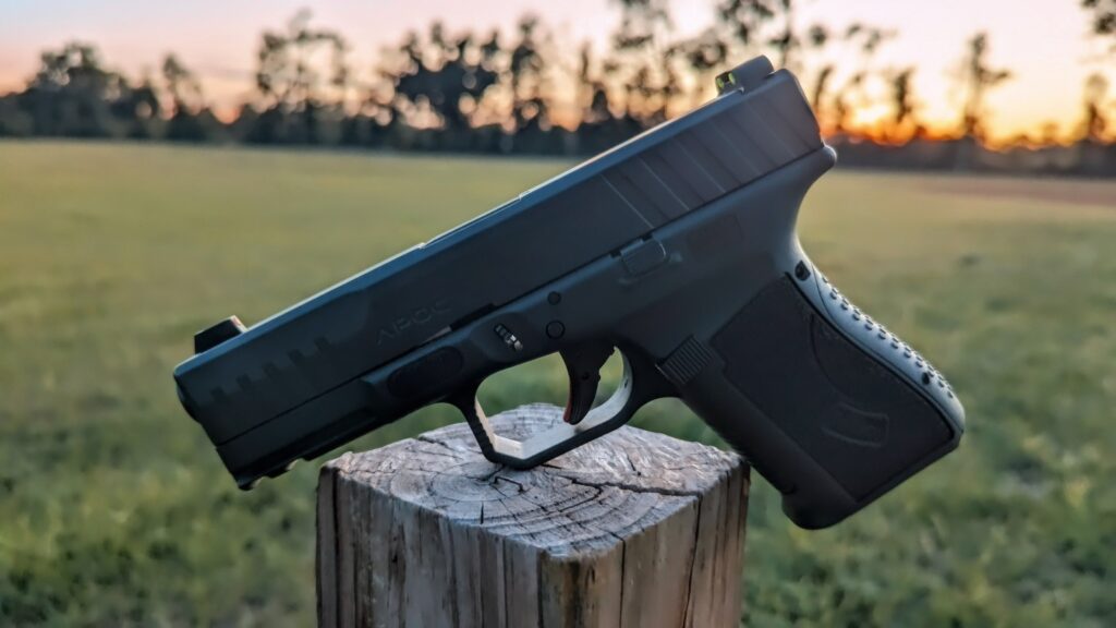 The APOC uses a trigger-dingus safety, but it doesn’t rub the tip of your finger when turning a lot of money into even more noise. The frame is also a hair longer than the Glock 19. On a standard Glock 19, my pinky touches the magazine base plate and often pins it in place when I hit the magazine release button. The slightly longer grip keeps that from happening with the APOC.