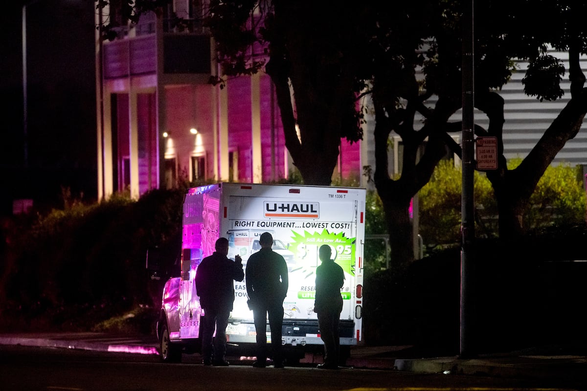 The U-Haul truck drove further away before the driver stopped and left the truck. He then got into a car that had driven beside it, which then drove away.