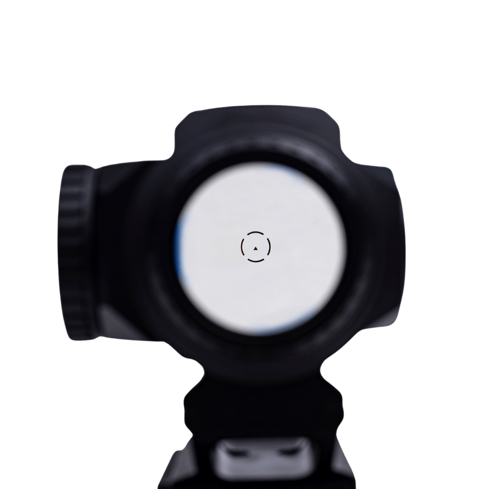 The optics quality on the Gideon is excellent with a crisp sight picture and good light gathering characteristics. The Advocate is parallax free to 100 yards and gives you a 79 foot field of view at that range. The reticle itself is a triangle within a circle that I found easy to pick up and fairly precise. For fast shots close in, just drop the circle or triangle on target. For more precise shots further out use the triangle itself or the tip of the triangle as your aiming point.