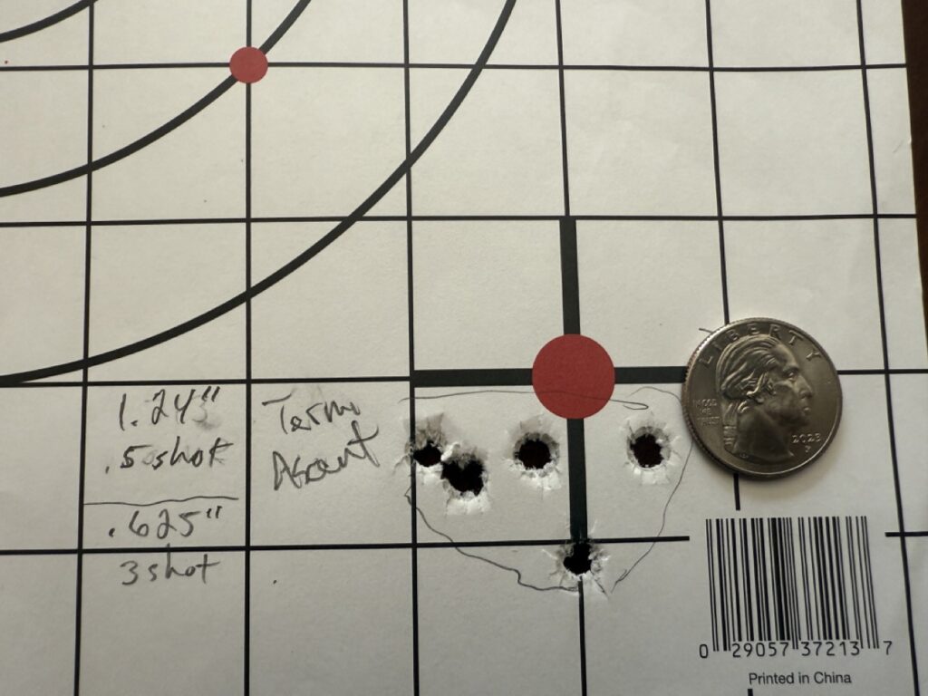 The Terminal Ascent 170-grain load produced five-shot groups averaging 1.432 inches with a mean radius of 0.561 inches. Chronograph testing revealed an average velocity of 3,034 fps—again below the 3,150 fps advertised on the box, though still comfortably above that coveted 3,000 fps threshold.