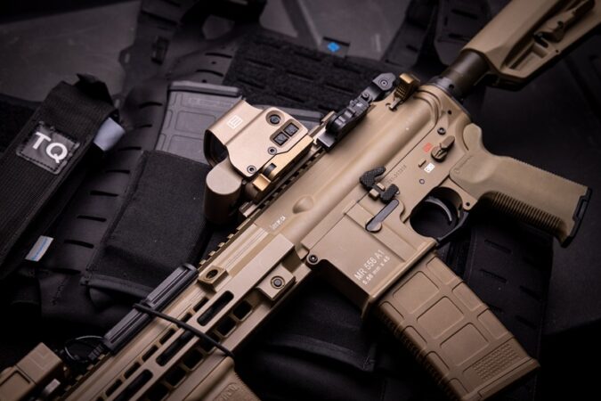 - Danger Close Reticle (DCR): A refined modification of the iconic “speed ring” circle/dot, featuring a chevron point of aim for 7-yard engagements, while still maintaining 50- and 200-yard solutions with a .223/5.56 zero.