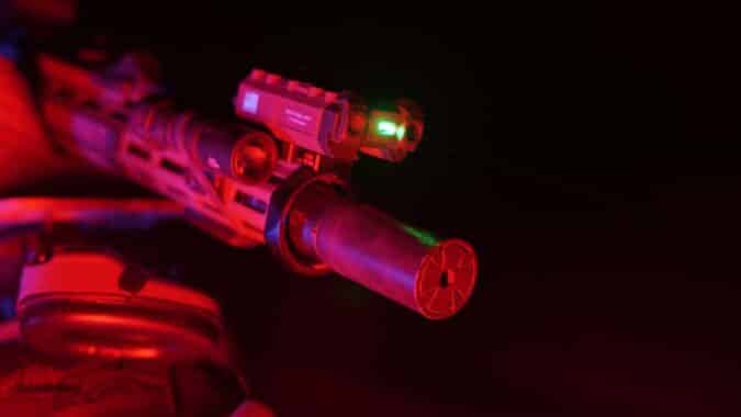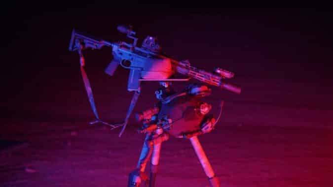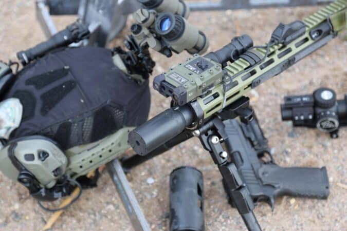 An Arisaka MalkoffHTL light with their mount provided excellent white light activated by a UNITY AXON switch with a Scope Bumper Weaponlight Cover as insurance for a white-light ND. The Walker Defense Nile rail covers provided consistent purchase and heat mitigation. Lastly, a MODTAC U-RAC Suppressor Shield helped to mitigate mirage common to any suppressor, which was hugely helpful shooting out to 600 yards.