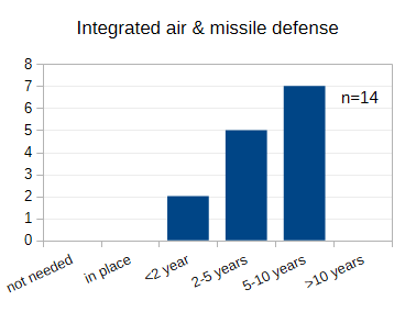 Opinions also diverged on suppression and destruction of enemy air defenses, or SEAD/DEAD, with three analysts considering Europe may need more than 10 years to put that in place, and others saying it will take less than two years.