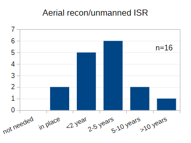 For space-based ISR, the assessment is less stark than a year ago, when a clear majority of respondents expected sufficient capability to be more than five years away. In the latest survey, half of the analysts expect it will take less time.